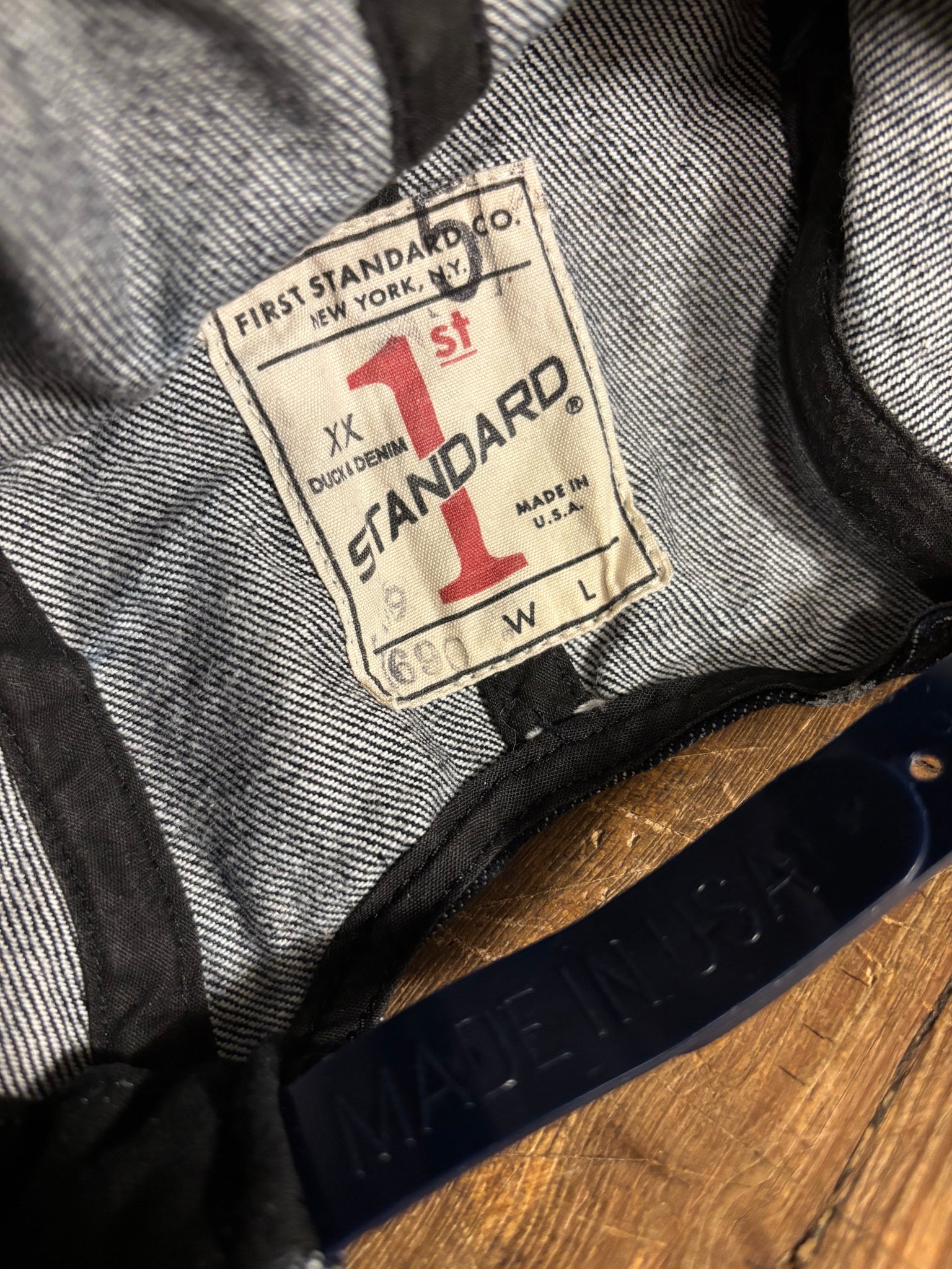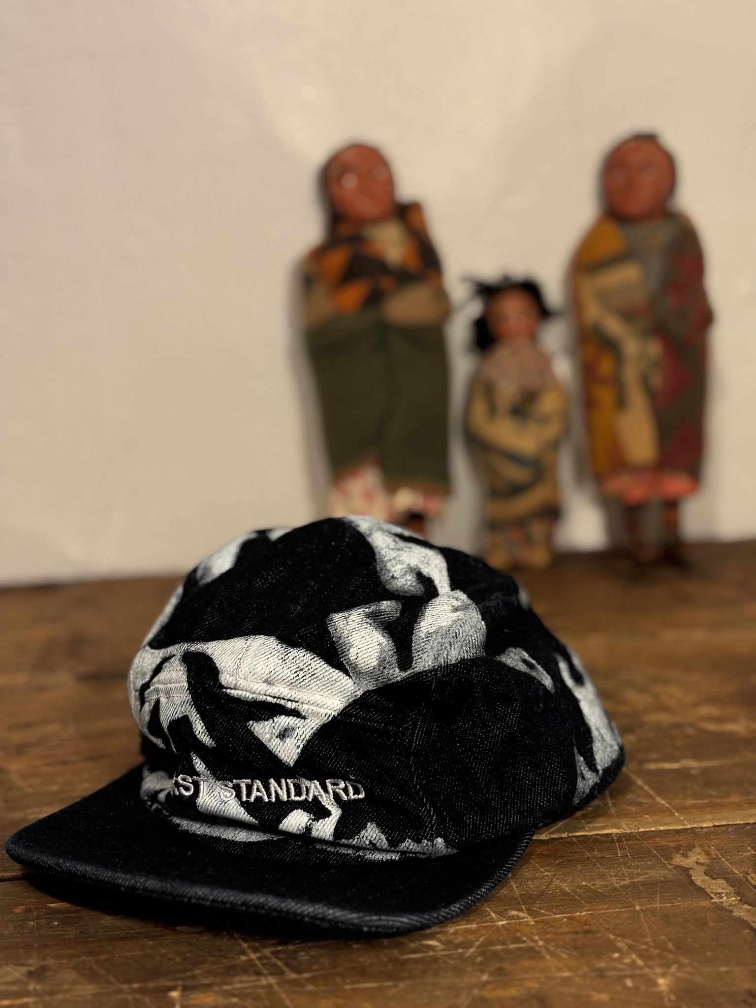 14oz Cone Mills selvedge denim five-panel cap made in Ridgewood, Queens, NY by Winners Cap Co., featuring First Standard front embroidery.