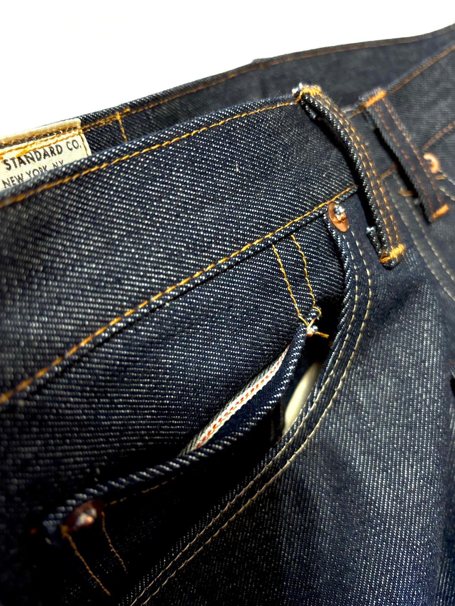 • 14 oz red-line selvedge denim from Cone Mills White Oak